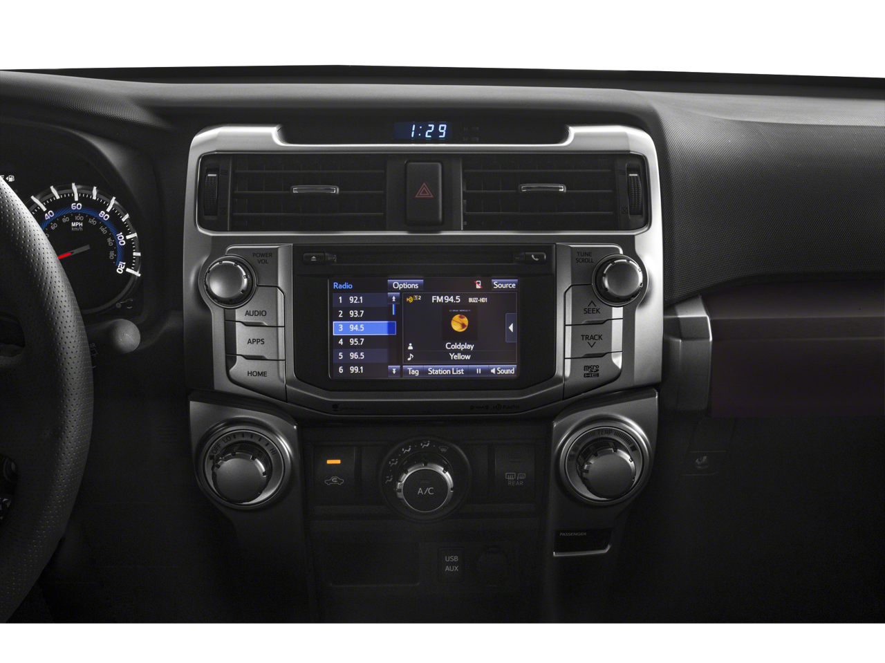 - Radio: Entune Audio Plus -inc: 6.1" high-resolution touch-screen display, AM/FM/HD Radio, CD player, 8-speakers, auxiliary port, USB 2.0 port, advanced voice recognition, hands-free phone capability, phone book access and music streaming via Bluetooth wireless technology, Scout GPS Link compatible, Siri Eyes Free and SiriusXM satellite radio w/3-month all access trial See toyota.com/entune for details.