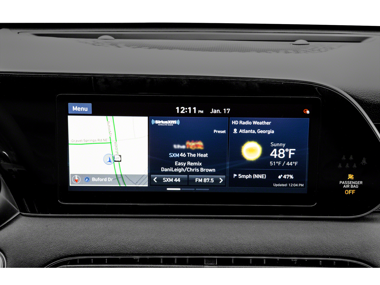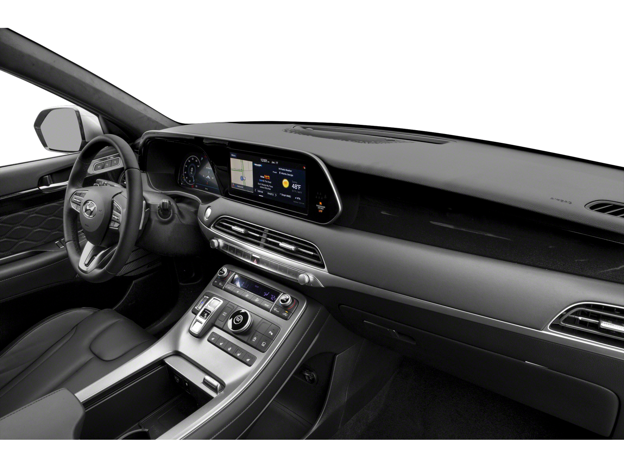 - Radio: AM/FM/MP3 Premium Audio System -inc: 630-Watts, 12-speaker harman/kardon premium audio system, QuantumLogic surround sound, Clari-Fi music restoration technology, 10.25" color touchscreen, on-board navigation, traffic flow including incident data via HD Radio (HERE), SiriusXM, HD Radio, Apple CarPlay & Android Auto, Blue Link Connected Car, driver talk (in-car intercom), quiet mode, multiple device connection (up to 2 devices), USB/Auxiliary input jacks, rearview monitor w/parking guidelines, Bluetooth hands-free w/wireless audio streaming and wireless device charging (for Qi-supported devices)