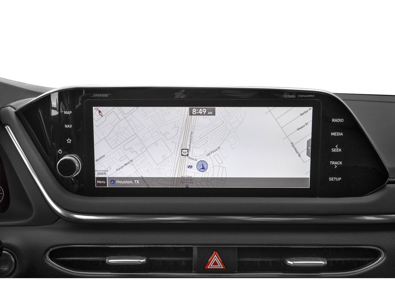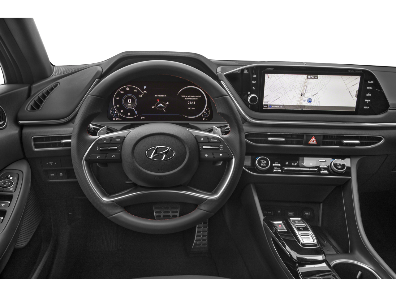 - Radio: AM/FM/MP3/HD/SiriusXM Display Audio w/Nav -inc: 10.25" color touchscreen, Bose premium audio w/12 speakers (1 center channel, 2 dash, 2 front tweeters, 4 door mounted, 2 rear mounted speakers plus 1 rear mounted subwoofer), dynamic voice recognition, integrated Bluetooth, Blue Link connected car system, Apple CarPlay, Android Auto, USB, diversity antenna for navigation and HERE HD traffic