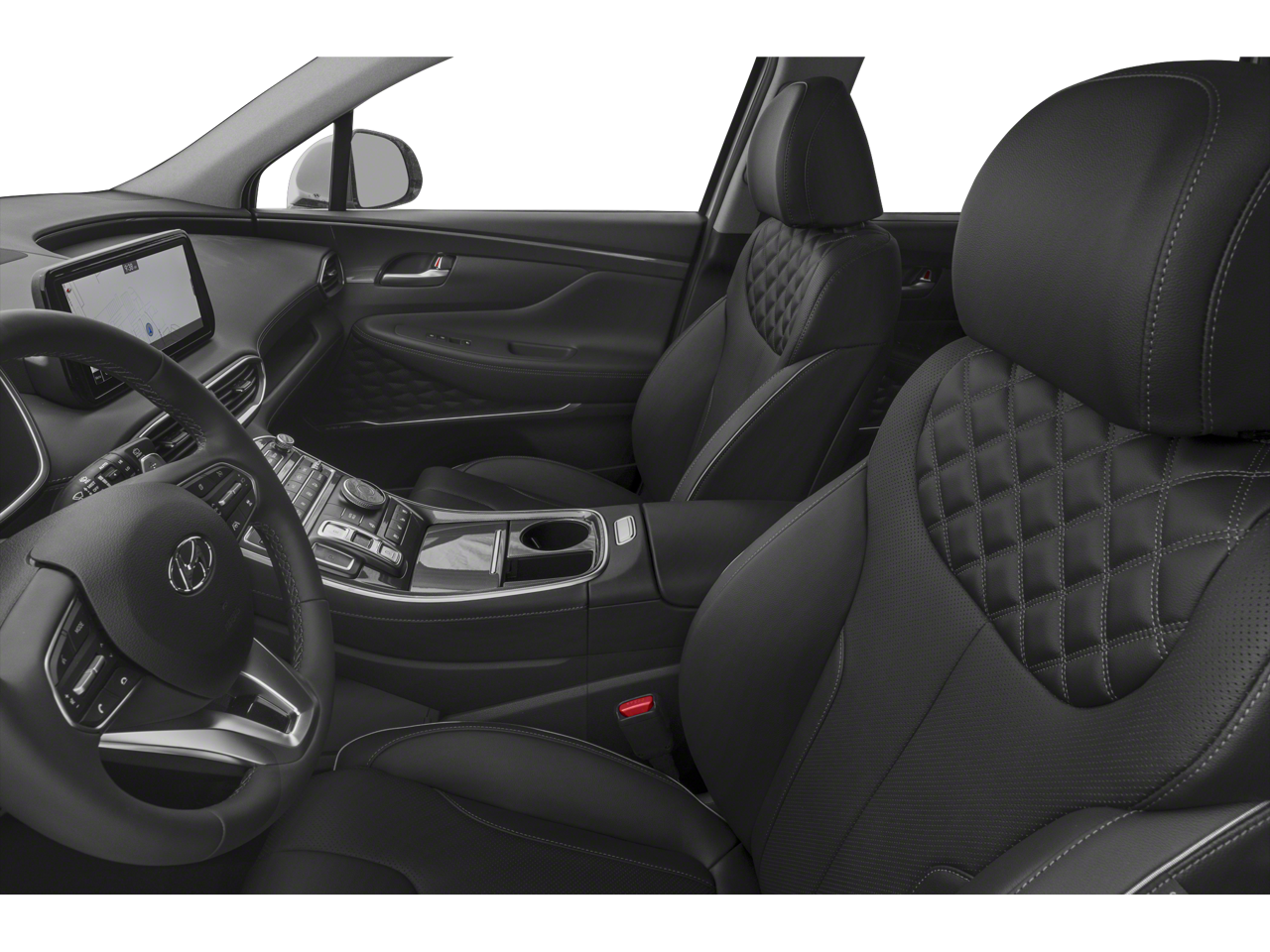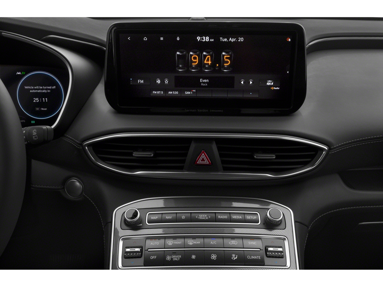 - Radio: AM/FM Harman Kardon Audio -inc: 10.25" wide touchscreen, Apple CarPlay and Android Auto, Bluetooth hands-free w/wireless audio streaming, dynamic voice recognition, USB ports, SiriusXM, HD Radio, Blue Link connected car system, 12 speakers including subwoofer, external amplifier, Clari-Fi music restoration technology, QuantumLogic surround, navigation system including traffic flow w/incident data via HD Radio (HERE), OTA updates (map only), rear seat quiet mode and steering wheel audio and phone controls