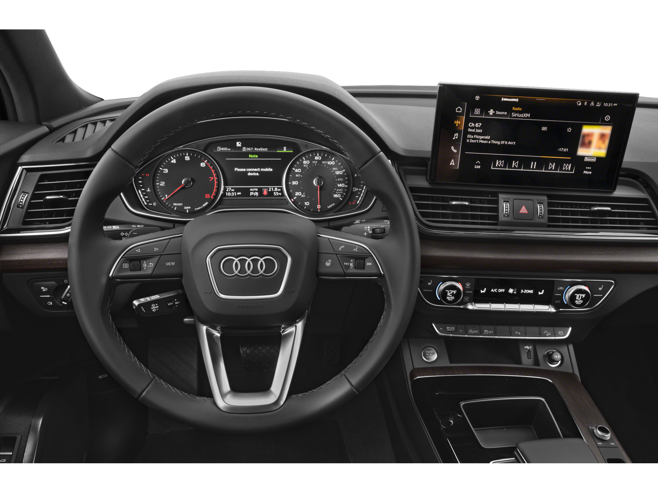 - Radio: AM/FM Stereo -inc: Audi sound system, MMI touch display w/10.1" center screen, preparation for mobile phone (Bluetooth) and Audi smartphone interface w/wireless Apple CarPlay