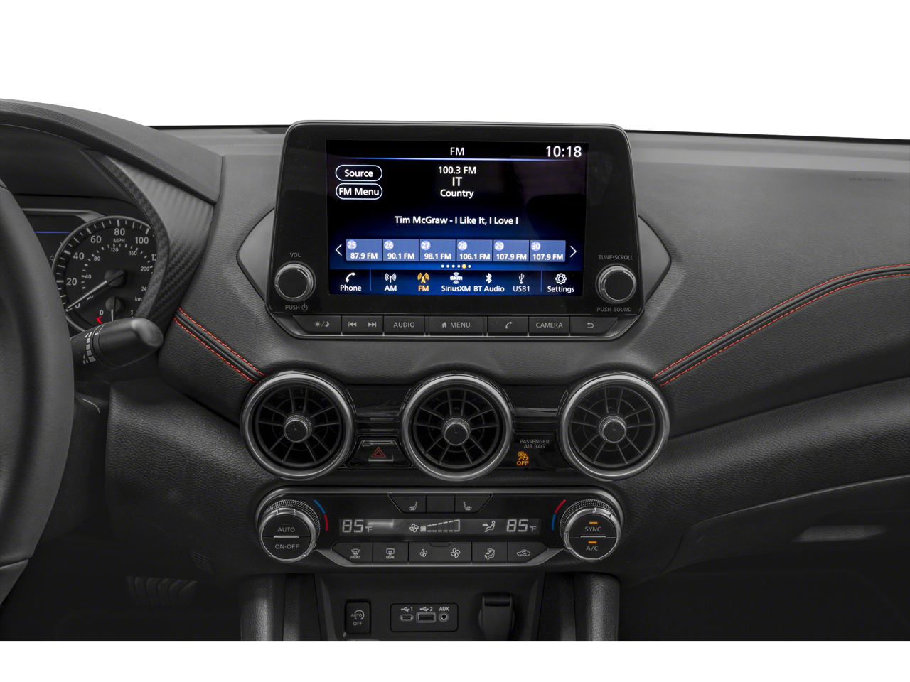 - Radio: AM/FM w/RDS/MP3/Aux-In -inc: 6 speakers plus 2 tweeters in A-pillar, 8" color display w/multi-touch control, streaming audio via Bluetooth, Bluetooth hands-free phone system, hands-free text messaging assistant, Siri Eyes Free, Google Assistant voice recognition w/Apple CarPlay and Android Auto, NissanConnect, (1) front USB connection port (type A), (1) additional front USB (type C), (1) charge-only USB (type A) center console and SiriusXM radio w/advanced audio features